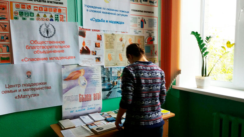 The initiators of the action were the girls who are studying in the college, and the event itself attracted the interest not only among students but also among teachers who received useful in teaching the material. All interested in college - and young people, and teachers - volunteers "Fate and Hope" Aid agencies in difficult circumstances filed booklets with information about the child's development before birth, about organizations that can help in crisis pregnancy, leaflets with contacts kansultantav- psychologists, gynecologists and other specialists, as well as positive examples of motherhood.
